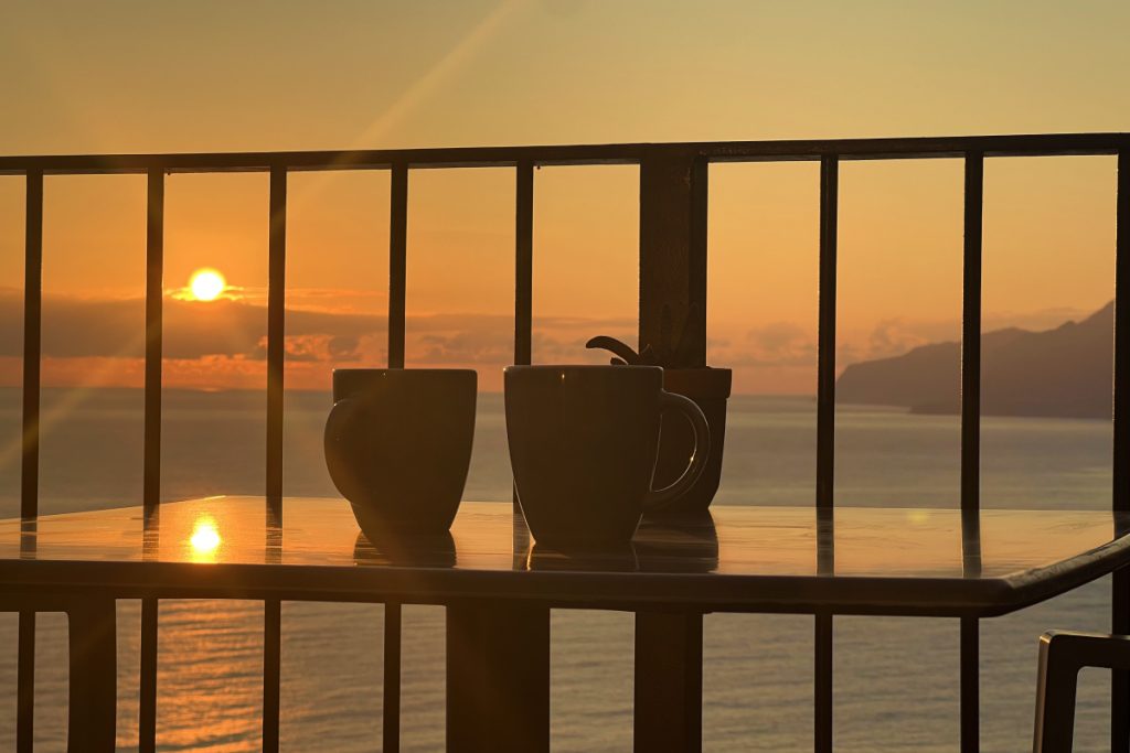 Z mojego domu, z widokiem na Atlantyk, często obserwuję, jak pierwsze światło dnia uderza w klify i lawowe skały. Ocean przybiera miękkie odcienie złota i różu, a całe wybrzeże wydaje się spokojne i nietknięte.